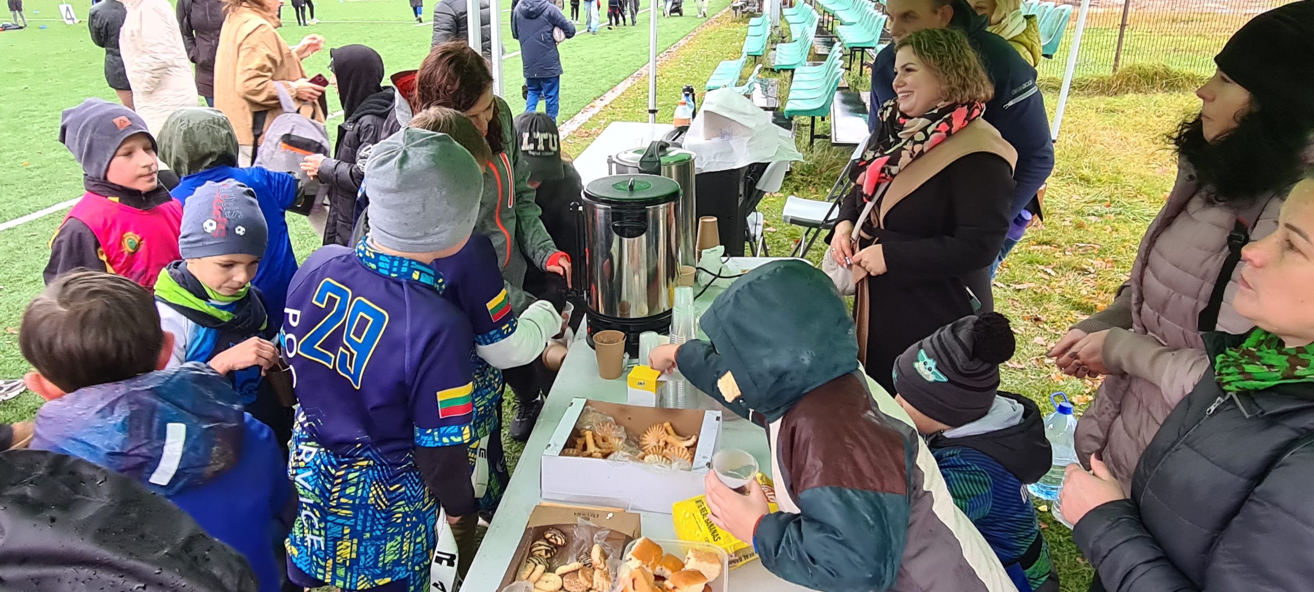 Tuo metu, kai vaikai aikštėje džiaugėsi žaidimu, Kauno komandų tėveliai rūpinosi jaukumu – darganotu oru jie visus vaišino šilta arbata, kakava ir įvairiais sausainiais. Šypsenos, juokas ir gera nuotaika skleidėsi visur. Kaip sakoma, nėra blogo oro – yra tik bloga apranga ir nuotaika.