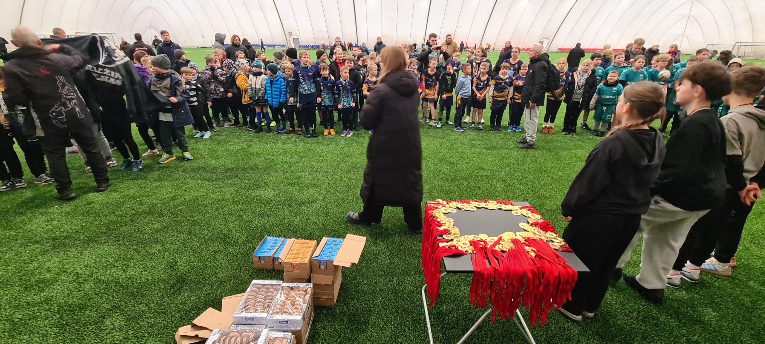 Po pagerbimo įvyko džiuginanti apdovanojimų ceremonija. Kiekvienas jaunasis regbininkas buvo apdovanotas medaliu, saldumynais ir, žinoma, nuoširdžiais plojimais. Atminimui liko ir džiaugsmingos komandinės nuotraukos, kuriose ryškiai šypsojosi kiekvienas vaikas.